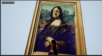 You play the role of museum guard in a cartoon world who realizes that "Mona Lisa", the famous painting, is distorted. He mysteriously enters the painting and must find a way to restore it, otherwise it will be fired. There are several enemies defind by the highmap. There are 5 lvl. On the ground lvl there the ennemis looking like painting realy ugly like baby drawing, at stage 2 the ennemies looking like childreen drawing. At the top level you defeat the boss, the true "Mona Lisa", if you beat her your going back at your work and the painting is back to normal a cartoon mona lisa inspired by tim burdon artistic view. The game itself is a First Person Shooter with some platform and jump, labyrinth and historical easter eggs.